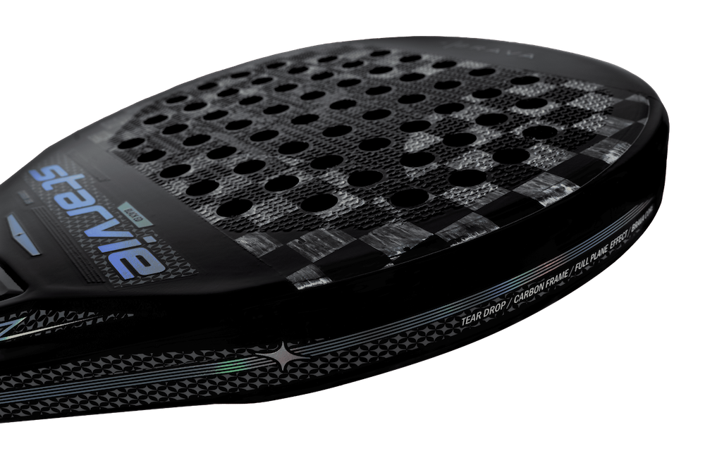 Brava-maila on palannut, mutta paranneltuna versiona, jossa on uusi 15K alumiinisoitu hiilikuitu mailanpäässä ja Soft 30 -pehmeätiheyksinen kumi. Tämä maila on mukava käyttää ja sopii täydellisesti pelaajille, jotka etsivät lisämukavuutta ja hallittavuutta jokaisessa lyönnissä. - 15K alumiinisoitu hiilikuitu mailanpäässä: Tämä hiilen ja alumiinin yhdistelmä on jopa joustavampi kuin 3K ja 12K hiilikuitu. Tämän tyyppinen kuitu antaa mailalle erittäin pehmeän tuntuman, mikä tarjoaa erinomaista mukavuutta ja ohjattavuutta pelatessa. - Soft 30 -pehmeätiheyksinen kumi on suunniteltu yleiseen peliin, joka sopii kaikentyyppisille pelaajille. Se auttaa luomaan suuremman pallon nopeuden ja helpomman suorituksen jokaisessa lyönnissä. - Pisaranmuotoinen, sen optimaalinen kärki on tasapainotettu kärkeä kohti. - Sen suoraan muotista luotu karheus päässä erottuu sen vakauden ja kestävyyden ansiosta. Full Plane Effect -teknologia mahdollistaa pallon lyömisen tarkemmin. - Se sisältää Core Brava -järjestelmän: mailan sydämessä sijaitsevan osan, joka on kehitetty estämään tärinää iskun aikana. - Noene Inside on mailan kahvaan sovellettu teknologia, joka on kehitetty yhteistyössä NOENE®:n kanssa. Uusi Noene Inside StarVie -iskunvaimennuskahva, joka on yksinomaan merkin mailoissa ja vakiovaruste, absorboi ja suojaa jopa 96 % iskujen ja tärinän aiheuttamasta negatiivisesta energiasta. - Tuote on 100 % valmistettu Espanjassa, Azuqueca de Henaresissa (Guadalajara).