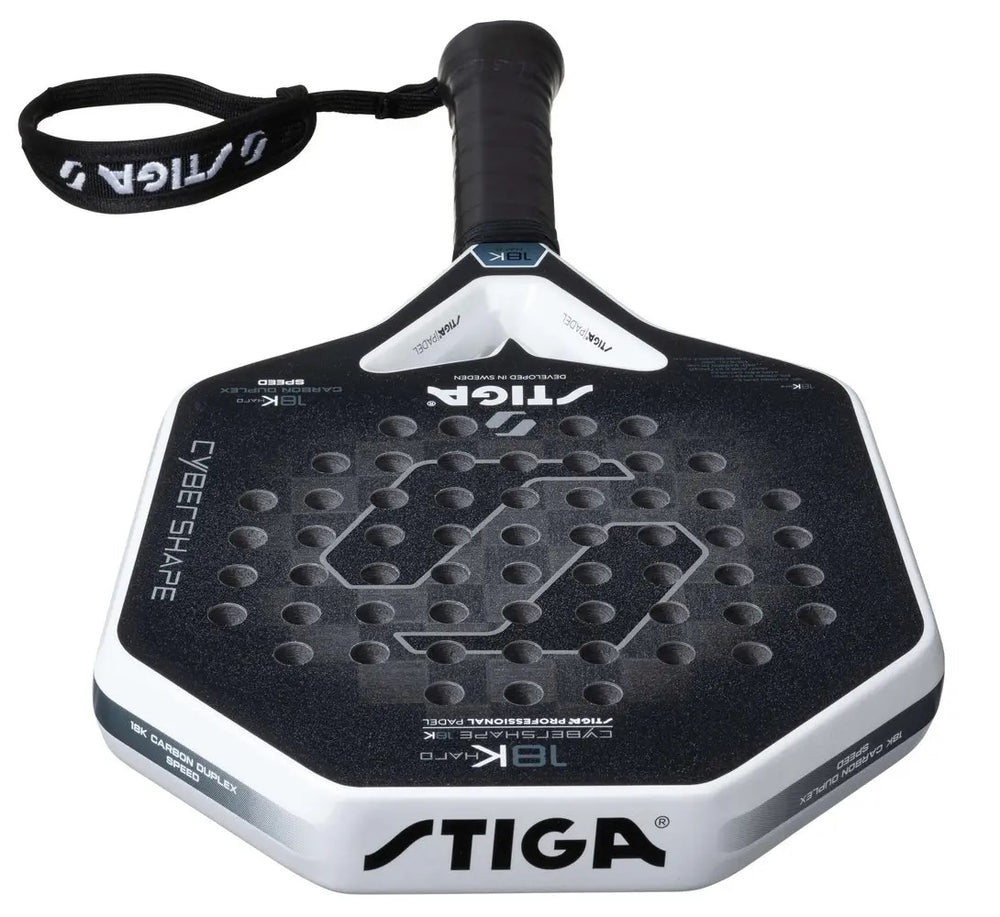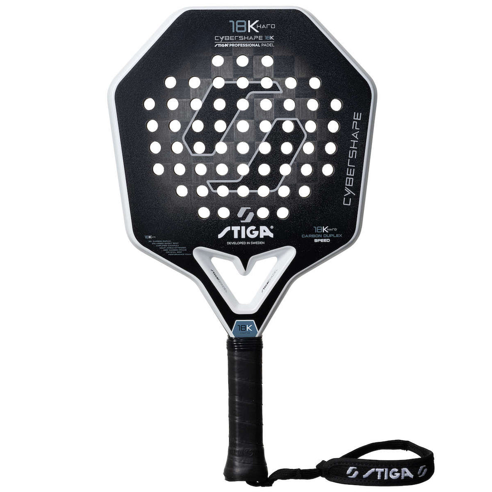 Cybershape 18K Hard – voimaa, hallintaa ja tuntumaa Cybershape 18K Hard -padelmaila ei jätä mitään sattuman varaan. Tässä mailassa saat parhaan kaikista maailmoista yhdessä mailassa. Voimaa, hallintaa ja tuntumaa. Mitä muuta voisit toivoa? Cybershape 18K Hard on täydellisesti tehty maila kokeneille hyökkääjille, ja aivan kuten muissakin Cybershape-mailoissamme, siinä on suurempi, optimoitu lyöntipinta ja peräti 20 % suurempi sweet spot verrattuna pyöreisiin mailoihin. Cybershape 18K Hardin erottaa ainutlaatuisen muotonsa lisäksi se, että se on jäykkä maila, joka antaa sinulle hyvän nopeuden ja hallinnan – tinkimättä lyöntituntumasta. Kiihtyvyys on oma lukunsa. Kun lyöt kovemmin ja nopeammin, Cybershape auttaa sinua liikkumaan eteenpäin ja luo ainutlaatuisen täydellisen hallinnan tunteen pitäen sinut liikkeessä koko ajan. Myös mailan vahvistettu hiilikuitukerros ja ainutlaatuinen hopeakäsittely edistävät tätä tunnetta. Ne sitovat kankaan yhteen ja antavat sinulle lyöntipinnan, jotta voit pelata hienostuneesti tinkimättä nopeudesta tai tarkkuudesta. Täydellinen maila lämpimämmässä ilmastossa pelaaville! Aivan kuten muutkin mailamme, Cybershape 18K Hardin suorat linjat sopivat täydellisesti kentälle ja helpottavat pallojen lyömistä lähempänä lasia ja maata. Pitkä kahva antaa sinulle hyvän otteen ja lisää joustavuutta peliisi. Cybershape 18K Hardissa on iskunkestävä runko, joka on valmistettu 100 % hiilikuidusta, jota kutsumme 360 Carbon Frameksi. Tämä luo jäykän mailan, joka reagoi nopeasti ja helpottaa vastustajan todella kovien iskujen käsittelyä. Mailan vaahtomuovi on myös tiheämpää, mikä lisää jäykkyyttä ja luo erilaisen äänen lyötäessä palloa pehmeämpään mailaan verrattuna. Maksimoidaksesi lyöntien kierteen ja helpottaaksesi pallon hallintaa, mailassa on hiekkapinta, jota kutsutaan nimellä Crystal Grip. Pitkä kahva antaa sinulle enemmän joustavuutta ja siinä on irrotettava rannehihna, joten voit helposti vaihtaa sen, kun se likaantuu.