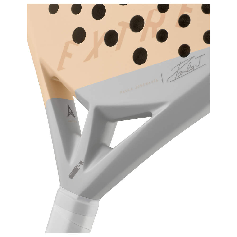 Rajoitetun erän EXTREME MOTION PAULA JOSEMARÍA -padelmaila perustuu Extreme Motion -malliin, jossa on samat ominaisuudet ja teknologiat. Siinä on maailman ykköspelaajan Paula Dinamitan yksinoikeudella suunnittelema maila. Hänen dynamiittihahmonsa on sisällytetty mailan suunnitteluun, mukaan lukien 3D-kierrekuvio. Paula valitsi tämän rajoitetun erän mailan värit osana mailaa, mikä täydentää eleganttia ja eksklusiivista muotoilua, johon kuuluu hänen allekirjoituksensa. Timantinmuotoisesta muotista valmistettu maila sopii erinomaisesti edistyneille ja ammattimaisille pelaajille, jotka etsivät sekä äärimmäistä voimaa että ohjattavuutta. • Rajoitetun erän suunnittelijana maailman ykkönen Paula Josemaría • Paulan valitsemat elegantit ja eksklusiiviset värit • Designissa on Paulan nimikko ja Paula Dinamitan hahmo • Tehty edistyneille ja ammattimaisille pelaajille, jotka etsivät voimaa • Timantinmuotoinen muotti • Perustuu Extreme Motion -malliin, jossa on samat ominaisuudet ja teknologiat • Sisältää yksinoikeudella Pro Spin Strips -lisävarusteen, uudet karheapintaiset liimanauhamme, jotka tuottavat enemmän kierrettä
