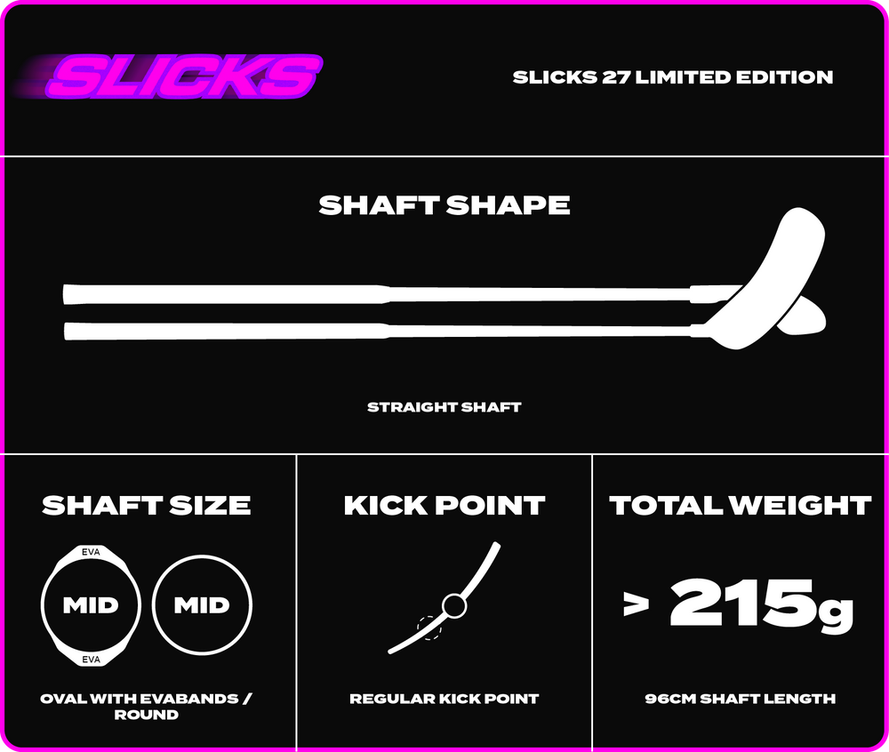 Medium-tynd og let højtydende Fat Pipe-kølle til professionelle spillere med nyt SILK SLICKS-blad. Medium-hård skaftflex til alsidige spillere. Klistret greb med en klæbrig fornemmelse. Revolutionerende SILK SLICKS-blad. Det silkeblødeste blad, SILK, er nu udstyret med en SLICKS-slidebar. Silkeblød! Blødt PP Soft (PPS) materiale i kombination med en PE-slidebar er den perfekte kombination til adrætte hænder. SLICKS-slidebaren, lavet af PE-plast, giver bedre glid sammenlignet med almindelige PP-blade, samtidig med at den bevarer følelsen af PP-plast i bladet.