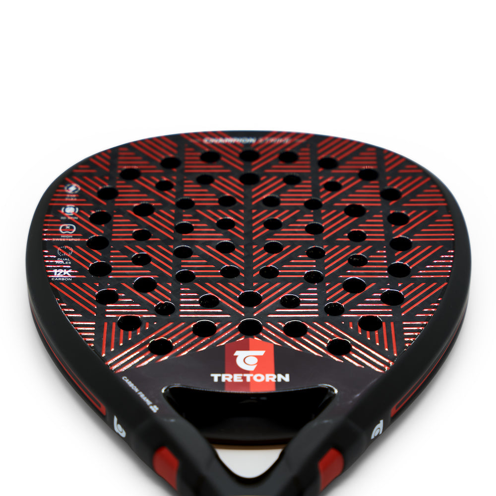 Med en enastående kombination av teknik och material ger detta racket dig kraften att dominera och kontrollen att leverera precisionsslag. Låt oss dyka in i de imponerande funktionerna som CHAMPION STRIKE har att erbjuda. CHAMPION STRIKE har ett Japanskt 12K kolfiberytskikt som inte bara ger dig en imponerande kraft i dina offensiva slag, utan också en djup och energirik respons. Detta ger dig förmågan att ta kontroll över spelet och sätta din prägel på varje boll. Tillsammans med EVA FLEX-kärnan får du en enastående mix av känsla och touch i spelet. Varje träff känns precist och responsivt, vilket ger dig möjlighet att spela med små marginaler för att behålla kontrollen över spelet. Perfekt för spelare med en exceptionell bollträff. Racket är även utrustat med DUAL-hole mönster som optimerar racketens kontaktpunkter, vilket förbättrar möjligheten till kontrollerade slag även när du träffar utanför racketens sweetspot. Resultatet? Konstant kraft och precision som låter dig bestämma spelets tempo. Dessutom kan du maximera din spinn med vår multi-directional 3D dekal för att överraska dina motståndare med variation i ditt spel. CHAMPION STRIKE ger dig möjligheten att vara mångsidig samt anpassa din spelstil efter varje situation.